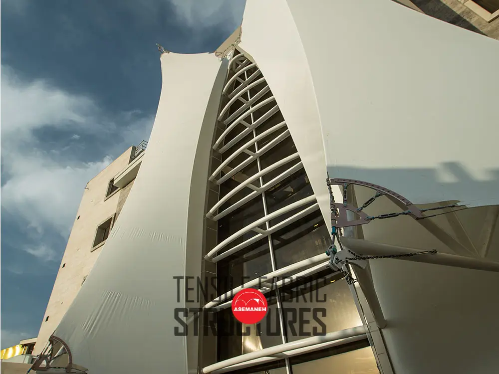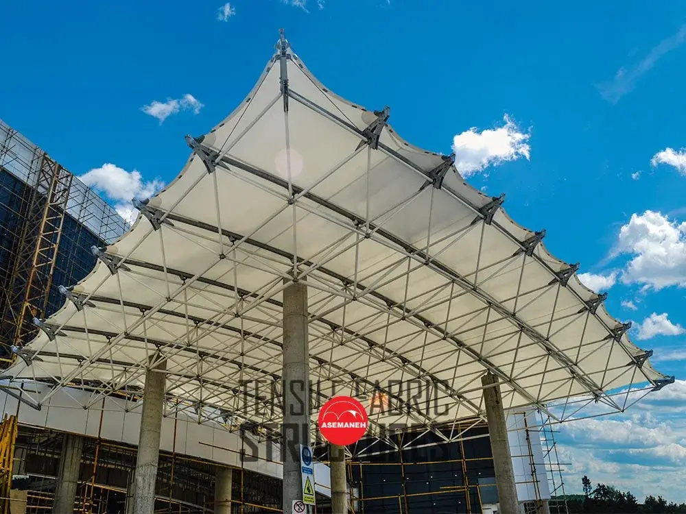 سازه چادری کششی ، سازه غشایی یا سازه پارچهای هم نامیده میشود. شرکت آسمانه مجری طراحی، تولید و اجراء انواع سازه های چادری با بهترین متریال است. در خرید سازه چادری به مشخصات، متریال، ضمانت، قیمت و … توجه داشته باشید.